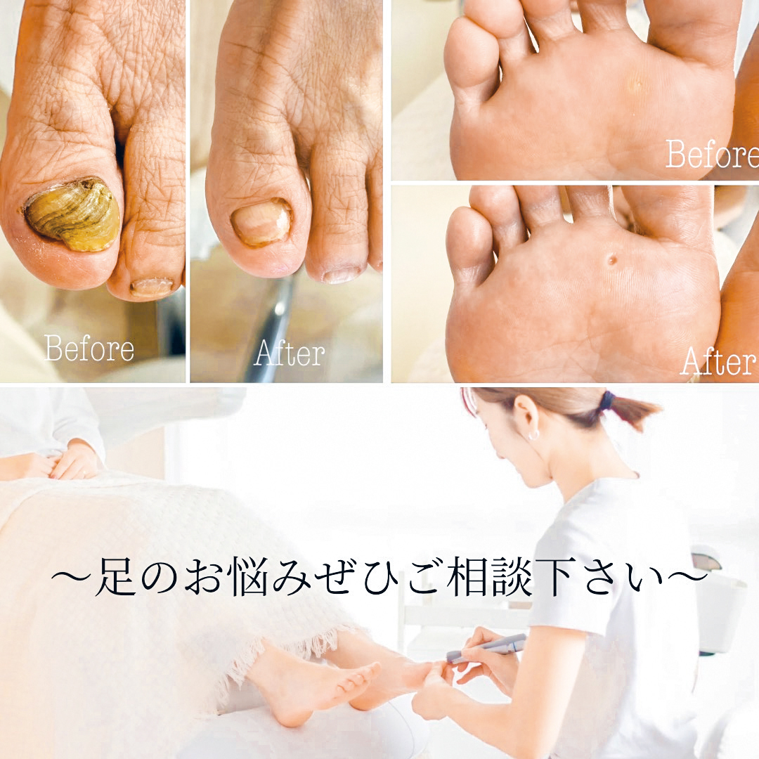 巻き爪・爪の変形・分厚い爪・タコ・魚の目・かかとの角質など足の健康サポートさせて頂いています!