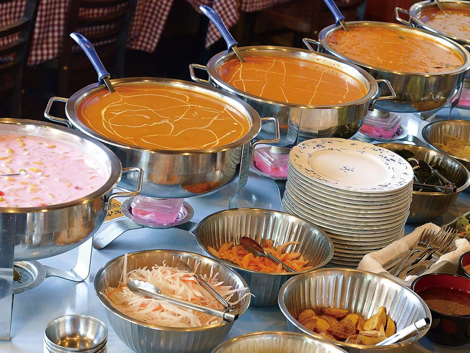 1PP1N MALL -- 飲食 -- 喫茶・洋食 -- 北インド料理 スーリヤ 北インド料理 スーリヤ 昼はランチバイキング。カレー・焼きたてナン・ライス・サラダ・デザートが食べ放題 ! 夜はカレー(35種類以上)はもちろん、タンドリーチキン等、本場・本物のインド料理をぜひお楽しみください。 ランチ予算 1,050 円~ ディナー予算 1,500 円~ ■住所/昭和町清水新居 258-1■TEL/055-267-6979■定休日/月曜日のディナー■営業時間/ランチ 11:30 ~ 14:30・ディナー 18:00 ~(LO 21:00)